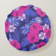 Almofada Redonda Tropical Rosa e Roxo - Um design de hibisco brilha