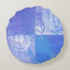 Um design abstrato com formas circulares dispersas em uma paleta de cor roxa e turquesa.