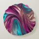 Almofada Redonda Turquesa Magenta-Abstrato de-Fluido Moderno Dourad