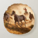 Almofada Redonda Two western cowboys riding horses, roping wild hor