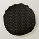Add a chic accent to any room with this unique stylish metallic gold box pattern black round pillow. Its sleek black fabric is highlighted by shimmering gold geometric designs, creating a modern and elegant look. Perfect for sofas, chairs, or beds, it combines comfort with striking decorative appeal.