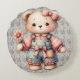 Almofada Redonda Ursinho de pelúcia Pastel com flor e macacão