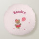 Travesseiro redondo com ursinho fofo com balão em fundo rosa