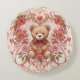 Almofada Redonda Valentine's ,Teddy Bear,Pink Love Heart and Flower