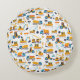 Kids Construction Dump Trucks Vehicle Personalizado com Nome Round Travesseiro. Travesseiro bonito para o quarto do seu filho! Com caminhões de construção feitos à mão. (Caminhões concebidos por syarifahbrit)