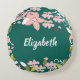 Almofada Redonda Verde com Flores Rosa Personalizadas