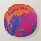 Sinta as Víblias Tropicais deste travesseiro de arte redonda, psicodélica e pop, com tons brilhantes e multicoloridos de frondes de palma laranja, rosa, azul e roxo. Estes travesseiros são divertidos, vibrantes e coloridos! Natureza com um pop de cor vibrante. Personalize com um Nome ou seu próprio texto. Esta imagem é uma fotografia original da natureza por JLW_PHOTOGRAPHY