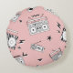 Almofada Redonda Vintage cassette players: padrão retrô.