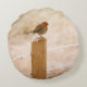 Design apresenta uma fotografia de um belo pássaro vermelho-assado-assado num poste de feno.
