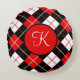 Travesseiro redondo de Xadrez de Argyle vermelho, preto e branco, monograma personalizado