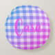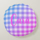 Almofada Redonda Xadrez Gingham Cor-de-Rosa Azul, Nome Simples Mode