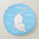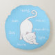 Almofada Redonda Yoga Gato Branco e Texto Editável sobre Turquesa