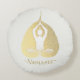 Instrutor de Meditação Yoga Studio / Treinador de Vida / Healer / Mestre Reiki / Travesseiro Redondo de Terapia de Massagem. Folha de Ouro Faux Elegante moderna, Folha de Ouro Bodhi e Yogi em pose fácil de assento / YOGA Easy Pose / Sukhasana Pose.