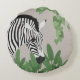 A solitary zebra walking amongst the monstera, ivy and bird of paradise leaves.