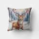 Rena festiva com galhadas brilhantes e um arco vermelho, em uma vila nevada cercada por pinheiros — perfeita para adicionar calor e charme de férias!