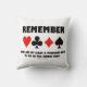 Have you gone down horribly at the bridge table, on the order of -400, -500, -800, etc.? Let your wry bridge player side shine the next time you take a nap with this throw pillow featuring the four card suits along with the following reminder saying to any bridge player who engages in risky bidding behavior or poor play: "Remember There Are At Least A Thousand Ways To Die At The Bridge Table". No need to be an avid bridge player or bridge teacher to enjoy this sound reminder that bridge is a humbling game indeed!