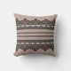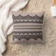 Almofada renda preta, trabalho aberto, fundo castanho