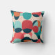Soft yet striking, this "Retro Shapes" throw pillow features a rhythmic, overlapping pattern of smooth pebble and egg silhouettes. The organic, rounded forms are rendered in a sophisticated mid-century palette of muted teal, vibrant coral, terracotta, and deep midnight navy. Playful clusters of stippled dots add texture and movement to the composition, set against a warm cream background. This design perfectly captures the cheerful, optimistic aesthetic of vintage abstract art, offering a refined pop of color and shape for any modern living space.
