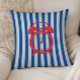 Throw pillow with vintage alarm clock illustration on a blue striped background. Perfect for dorm rooms.