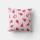 Retro Drops Pattern Throw Pillow. A geometric pattern featuring pink and cream teardrop shapes on a brown background with intersecting lines.