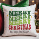 Espalhe alegria natalina com esta almofada colorida que apresenta uma tipografia festiva em estilo retrô que proclama “Feliz, Feliz, Feliz Natal”, em tons vibrantes de vermelho, verde e amarelo. Estrelas de acento simples adicionam um toque de magia ao design, e a melhor parte é que você pode personalizar o nome da família para tornar esta almofada de Natal exclusivamente sua. Decore sua casa para a temporada com estilo, calor e um toque pessoal.