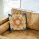 Almofada Retro Mandala Flor Laranja Azul e Amarelo