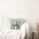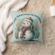 Personalize este travesseiro moderno de neve do século médio com o nome de sua família ou qualquer outro texto. Um presente perfeito ou um artigo de decoração caseira para o Natal ou outros feriados de inverno. O adorável boneco de neve está empacotado para a neve e em frente a um fundo de neve na moda.