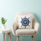 Roda do navio de crachá náutico e estrela náutica. Belo travesseiro azul e branco para cada sala de estar, quarto, entrada - para cada casa náutica. Para todos os marinheiros e todos que amam náutico, Hamptons, Nantucket e New England Style.