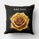 Uma rosa dourada detalhada rodeada por bordas radiantes, posta contra um fundo preto profundo. Atmosfera elegante e luxuosa ideal para designs decorativos, românticos ou comemorativos.