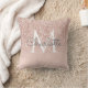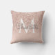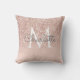 Rosa de glitter chic e travesseiro decorativo de monograma cor-de-rosa pincelado. Projetado por Thisnotme©