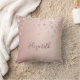 Um travesseiro para um quarto de meninas de 16 anos. Um fundo rosa de ouro falso com um rosa de ouro brilhante elegante. Modelo para um nome. O nome é escrito em ouro rosa escuro com um grande estilo escrito à mão moderno.