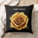Um rosa detalhado cercado por bordas radiantes, colocado sobre um fundo preto profundo. Atmosfera elegante e luxuosa, ideal para designs decorativas, românticas ou celebratórias.