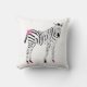 Um travesseiro decorativo rosa-quente e preto giro com uma zebra bebê vestindo um arco rosa-menina e cascos rosa-quente bonito. Este caso de tendências só para meninas pode ser personalizado adicionando seu nome.
