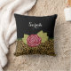 Um travesseiro decorativo quadrado de impressão leopardo marrom-ouro chic decorado com uma rosa vermelha elegante. Faça este na moda animal impresso e um design floral vermelho especial ao adicionar o nome da sua garota favorita.