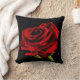 Uma bela rosa vermelha com gotas de água em um travesseiro decorativo de fotos pretas.