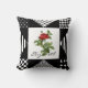 Fique na moda com este travesseiro de padrões geométricos branco e preto na moda com uma rosa vermelha chic. Personalize este ícone gráfico e a design do bolinhas adicionando seu nome.