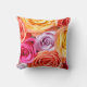 apresentando um buquê florescente de rosas em várias cores que preenche o travesseiro.