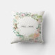 Com uma delicada grinalda floral em aquarela, este travesseiro comemorativo de aniversário de casamento botânico elegante pode ser personalizado com as informações do seu aniversário especial em texto elegante. Concebido por Thisisnotme©