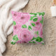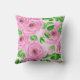 Almofada Rosas de aquarela cor-de-rosa com folhas e botões