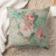 Reprodução britânica de arte de Tecido Vintage de 1890, com rosas cor-de-rosa e margaridas gerberantes sobre fundo verde-claro com fita azul.