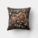 Duas belas rosas esculpidas, rodeadas de folhas delicadas e botões menores, destacam-se contra um fundo ornamentado, apresentando uma arte requintada e artesanato.