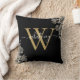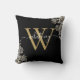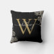 Almofada de decoração com monograma de nome em script floral elegante moderno com rosas pretas e douradas. Você pode personalizar o nome e o monograma inicial para criar seu design exclusivo. Criado por Thisisnotme©