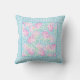 Um Travesseiro decorativo ou uma almofada bonito e feminina, com um padrão de rosas cor-de-rosa brilhantes sobre fundo azul-céu, pontilhado com pequenas borboletas brancas, com uma borda de gingham azul e branco. Parte da coleção de Dias de Verão de Posh e Painterly.