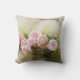 Rosas rosa/cravos num travesseiro decorativo de cesta.