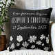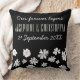 Almofada quadrada preta e branca moderna e elegante como lembrança personalizada de casamento, presente para recém-casados ou para aquecimento de casa, para novos proprietários de casa.Adicione seus nomes e uma data significativa para você, como data de casamento, ou data de mudança, ou data de entrada em uma nova casa, etc.Elegante caligrafia branca manuscrita e padrão sutil de flores silvestres desenhadas à mão em nuances neutras, fácil de combinar em qualquer ambiente.