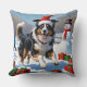 Almofada Rough Collie correndo em neve com chapéu de Natal
