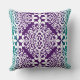 Este travesseiro decorativo bonito caracteriza um damasco branco em um roxo e em um fundo do ombre da cerceta. O verso o oposto da parte dianteira.