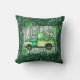 Ruas. Capas de aquarela do dia de Patrick e caminhão verde-xadrez da fazenda da safra carregada com flores brancas em madeiras verdes e penduradas, com fundo de impressão de glama verde-leopardo.