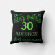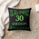 Rua Patrick Day Aniversário Permite Travesseiro de shamrock. Green Sparkles Shamrock em preto personalizado. O dia verde de São Patrício brilha no trevo. Foto de faíscas, não brilho real!