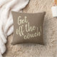 O texto neste travesseiro de sofá, "Sai do sofá!", poderia ser para o cão que derrubou, ou para o membro da família que precisa muito de exercício.